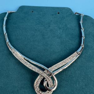 Collar necklace set with rhinestones and large knot design