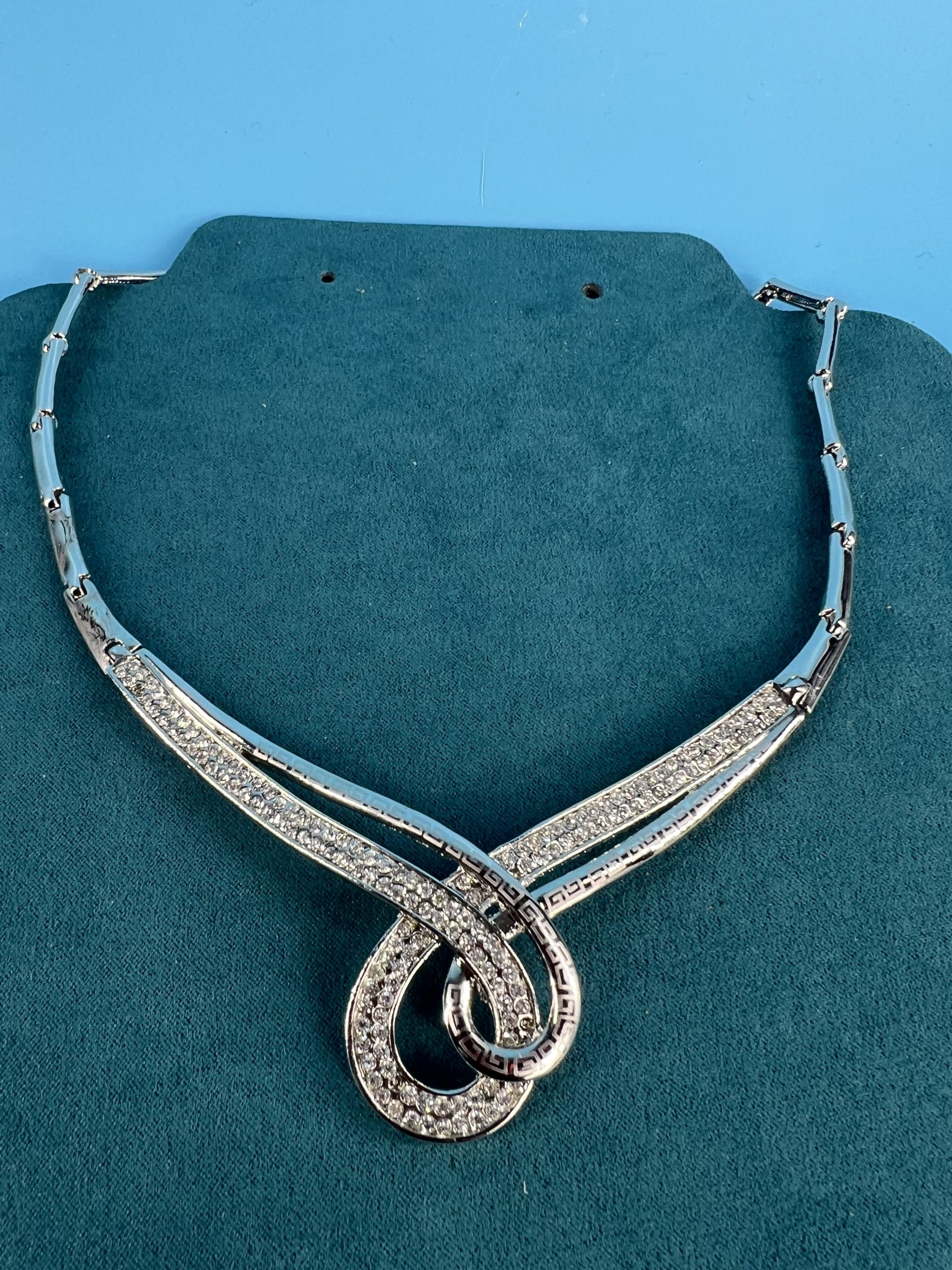 Collar necklace set with rhinestones and large knot design