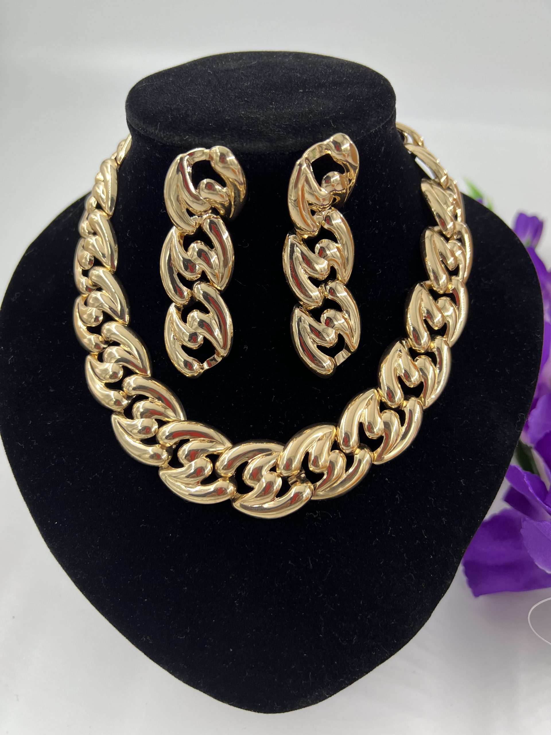 Gold plated Necklace and Earrings set link style quantity