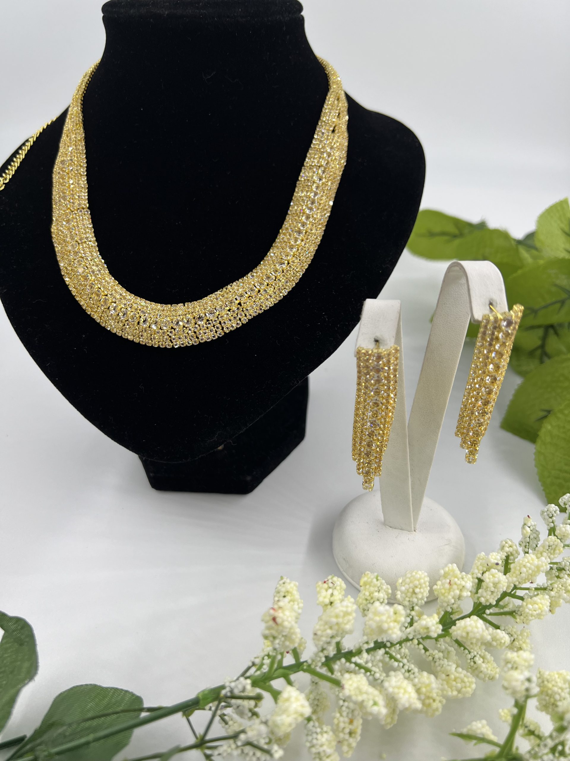 Gold plated Necklace and earrings set with beautiful rhinestones quantity