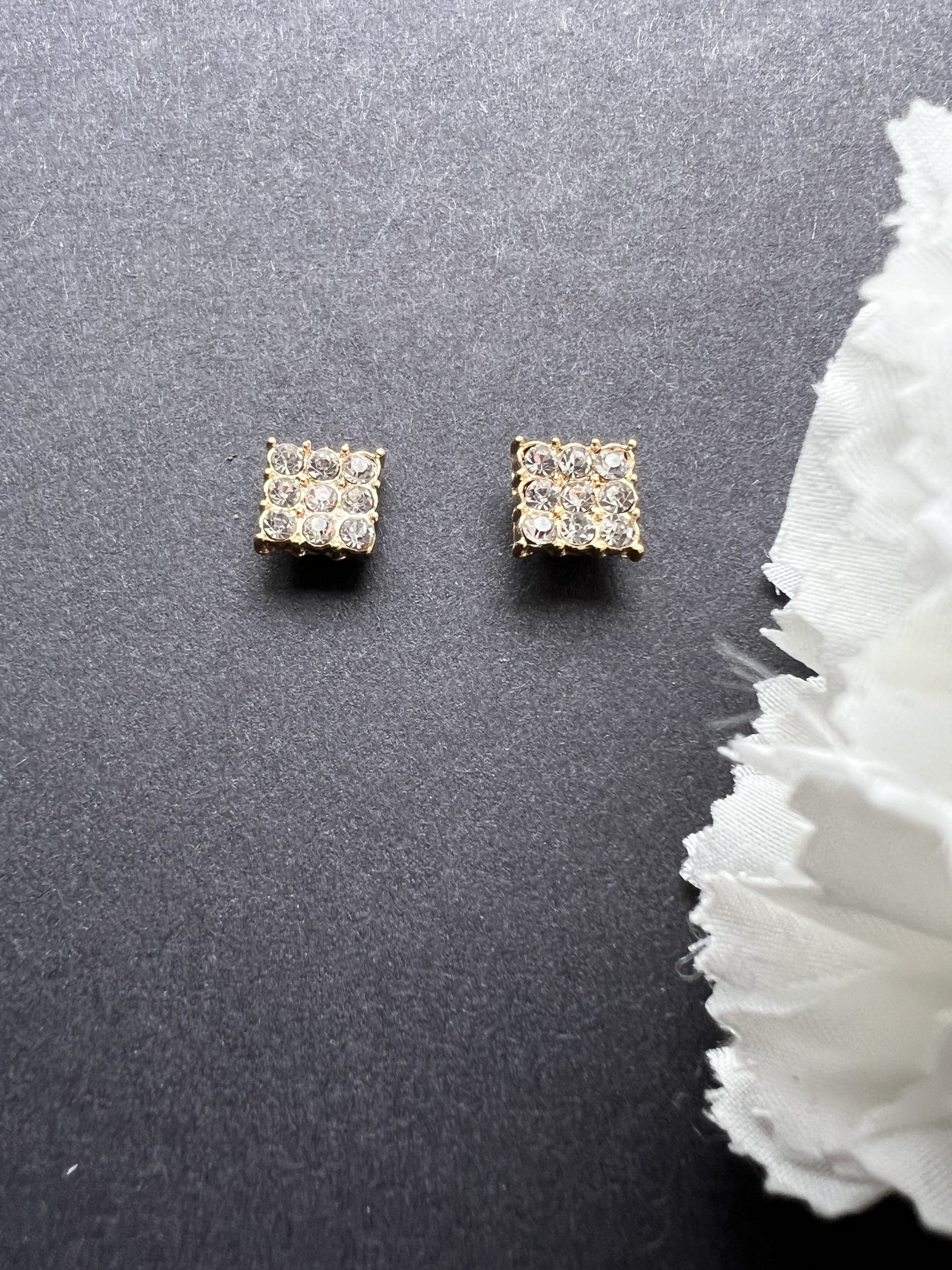 Gold Plated stud earrings Square with Gemstones quantity