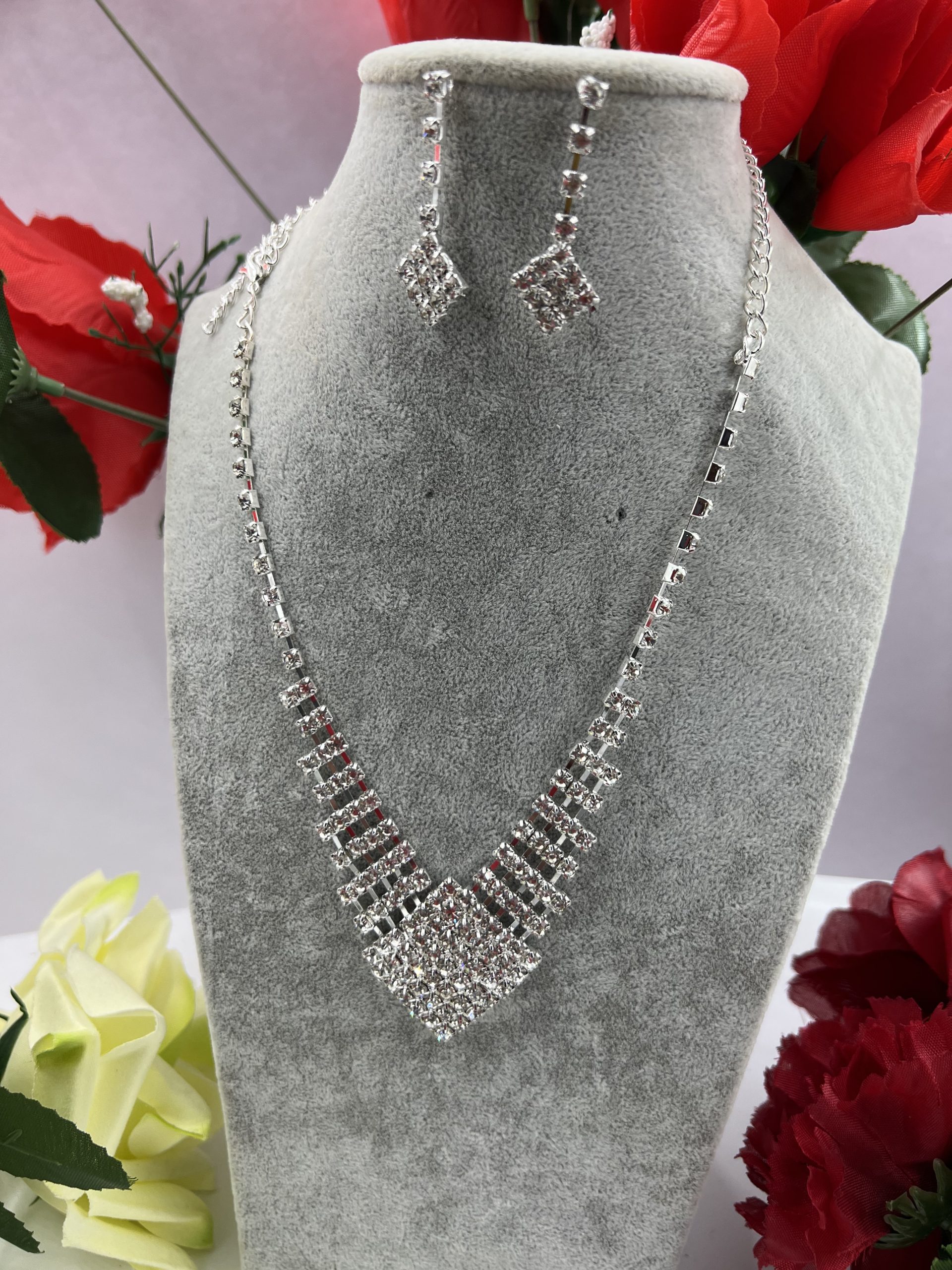 Be the first to review “Rhinestone Earrings and Necklace Silver ...”